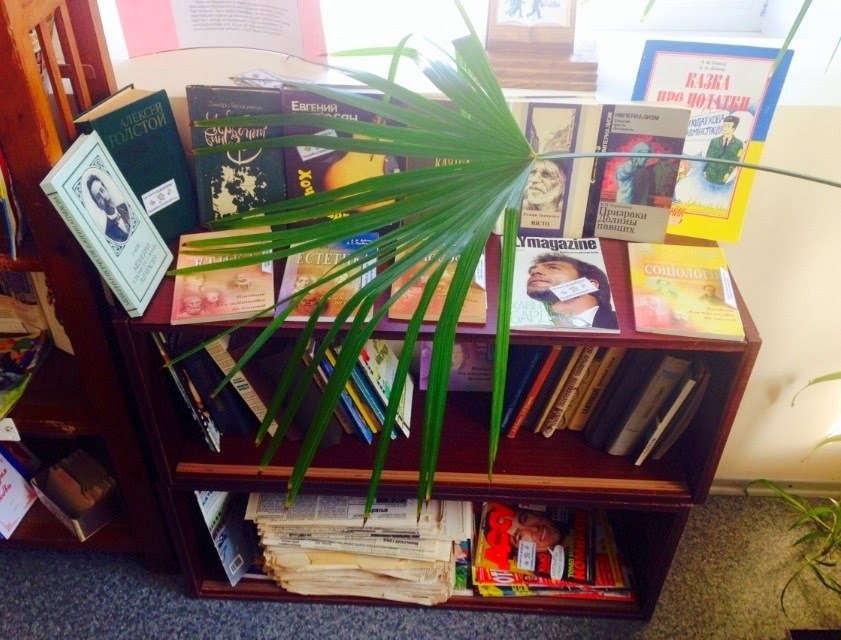 | Місце для буккроссингу в українській бібліотеці. |